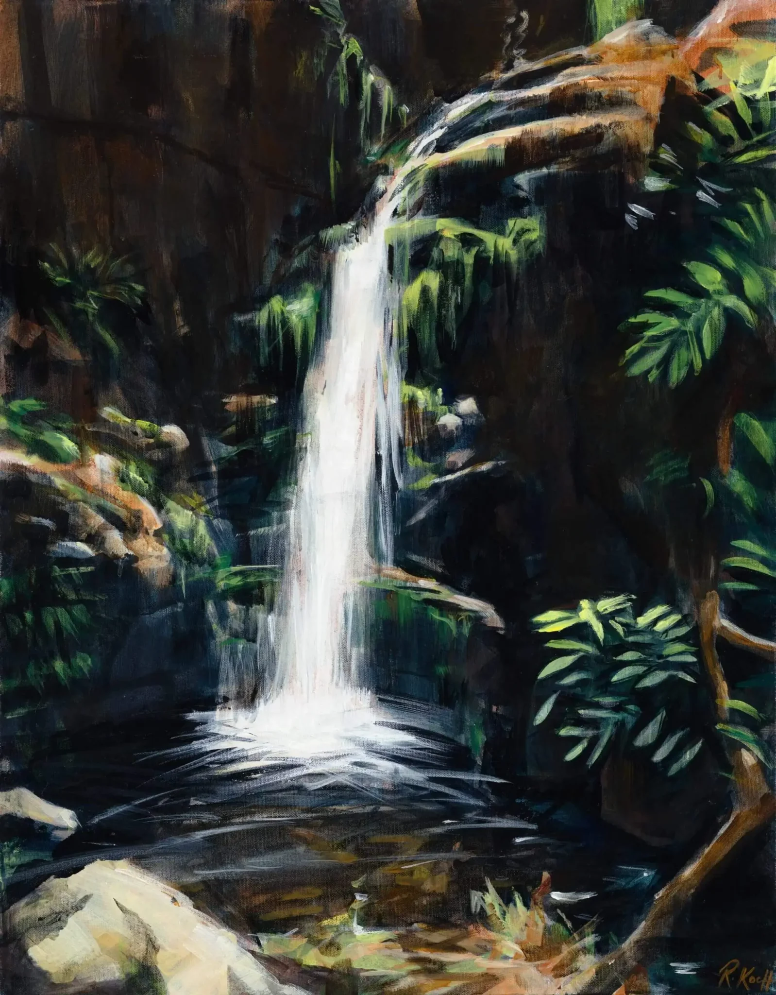 This work is of a less-frequented waterfall that sits just above the “Second Waterfall” in Jonkershoek Nature Reserve. I named it “My Sister’s Keeper” as, without feeding its more famous sister, the latter would not exist.